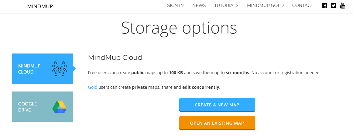 - Accede al sitio web de MindMup https://www.mindmup.com/#storage