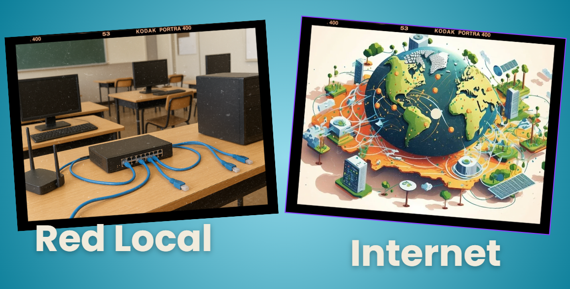- Cada red local (LAN) conecta varios dispositivos dentro de un mismo espacio (por ejemplo, un aula, una casa o una oficina).