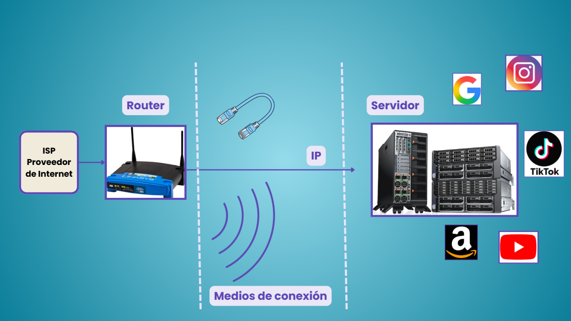 Desde aquí, los datos viajan hasta los servidores web donde están las páginas o servicios que usamos.